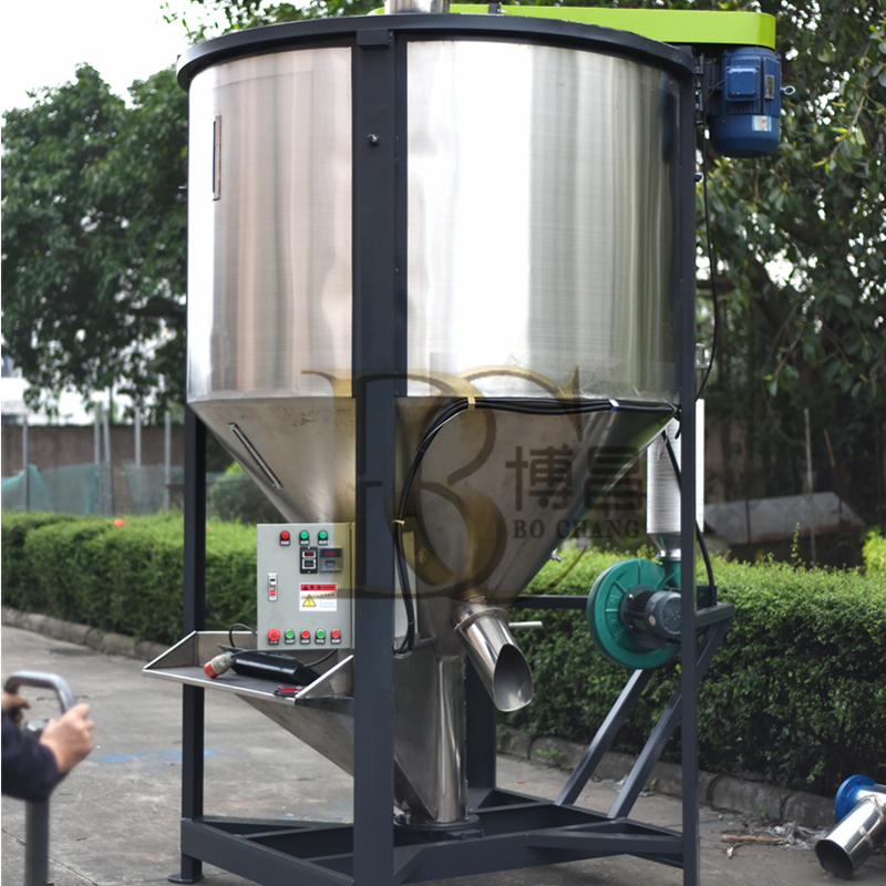 攪拌機(jī)有多種形式,常用的立式拌料機(jī)主要由:電機(jī)輪、電機(jī)、桶體、螺桿、出料口、清料口、皮帶輪、視窗、人梯、入口、電器箱、循環(huán)落料口、投料口等構(gòu)成。 博昌傳統(tǒng)的塑料立式拌料機(jī)、外觀笨重、維修不方便、又需經(jīng)常的維修。新款的攪拌機(jī)經(jīng)過多年的技術(shù)改良,混合流暢度及均勻度比普通混合機(jī)好。