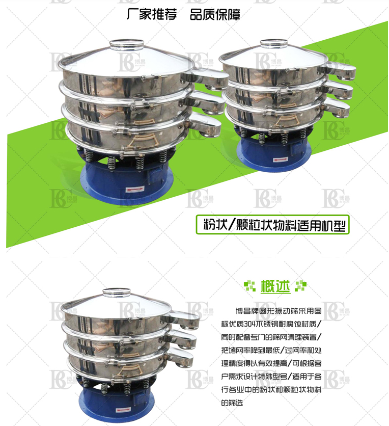 振動篩,顧名思義振動篩分設備,是一款可以加裝一到四層篩網的篩分設備。對同一物料篩分出2-3種不同標準。適用于各種高精密粒、粉、漿液等物料的篩分與過濾。一般使用振動篩:檢查篩網是否有破損,電機有無保養,如果篩面上的物料多時,應調整電機配重塊,使篩分時間延長,篩分精細。